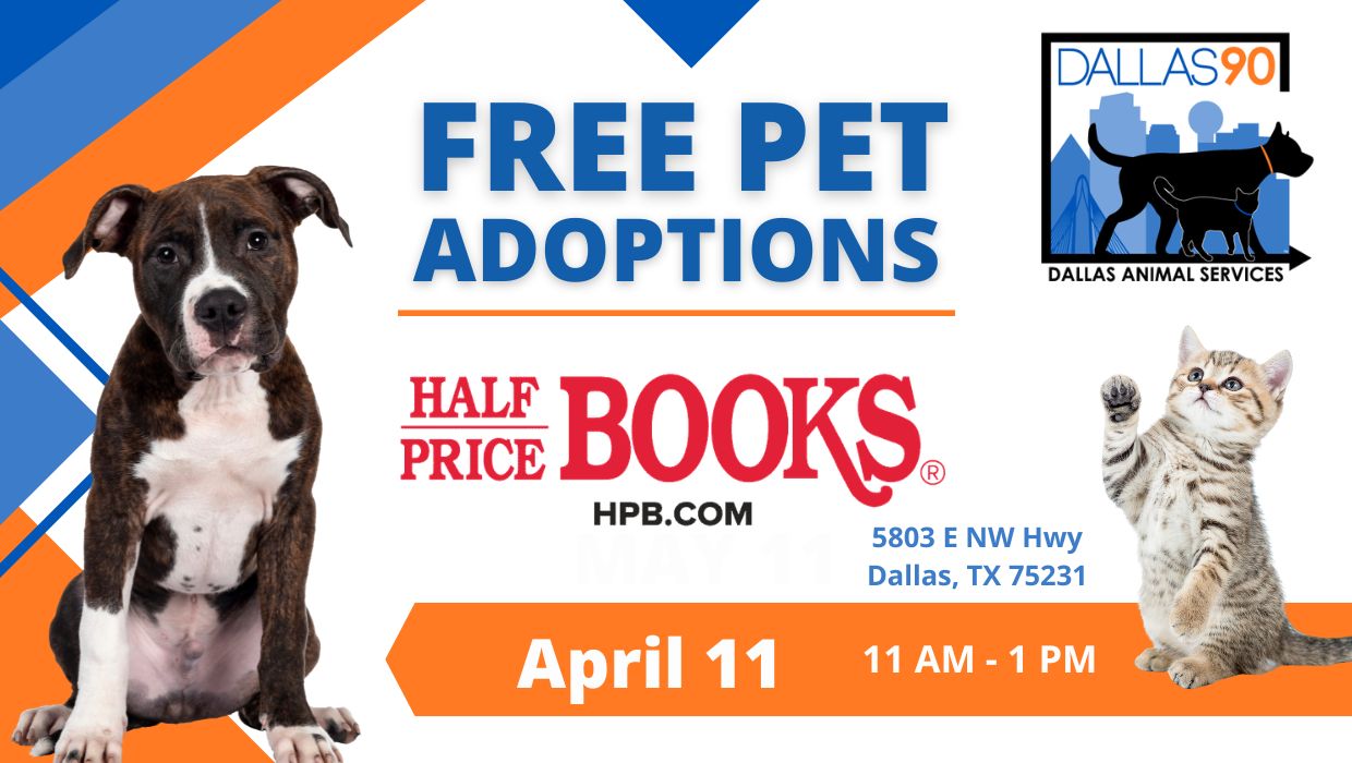 Come out to Half Price Books on E Northwest Hwy on Saturday, April 11 and meet some adorable, adoptable pets from Dallas Animal Services!