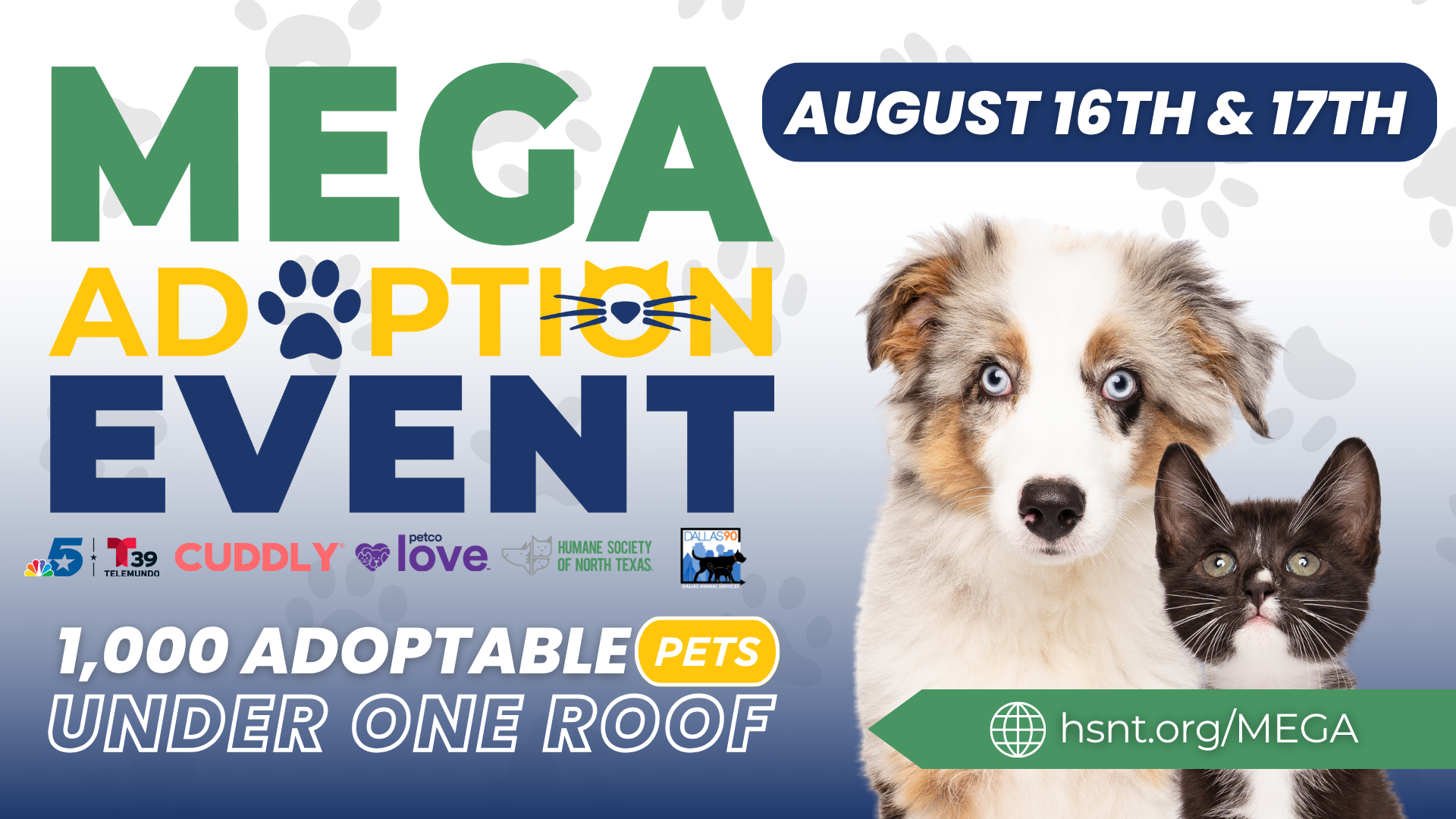 Get ready, North Texas! 🐶🐱 Dallas Animal Services is teaming up with NBC 5, Telemundo, Petco Love, and the Humane Society of North Texas for the MEGA Adoption Event you don’t want to miss!