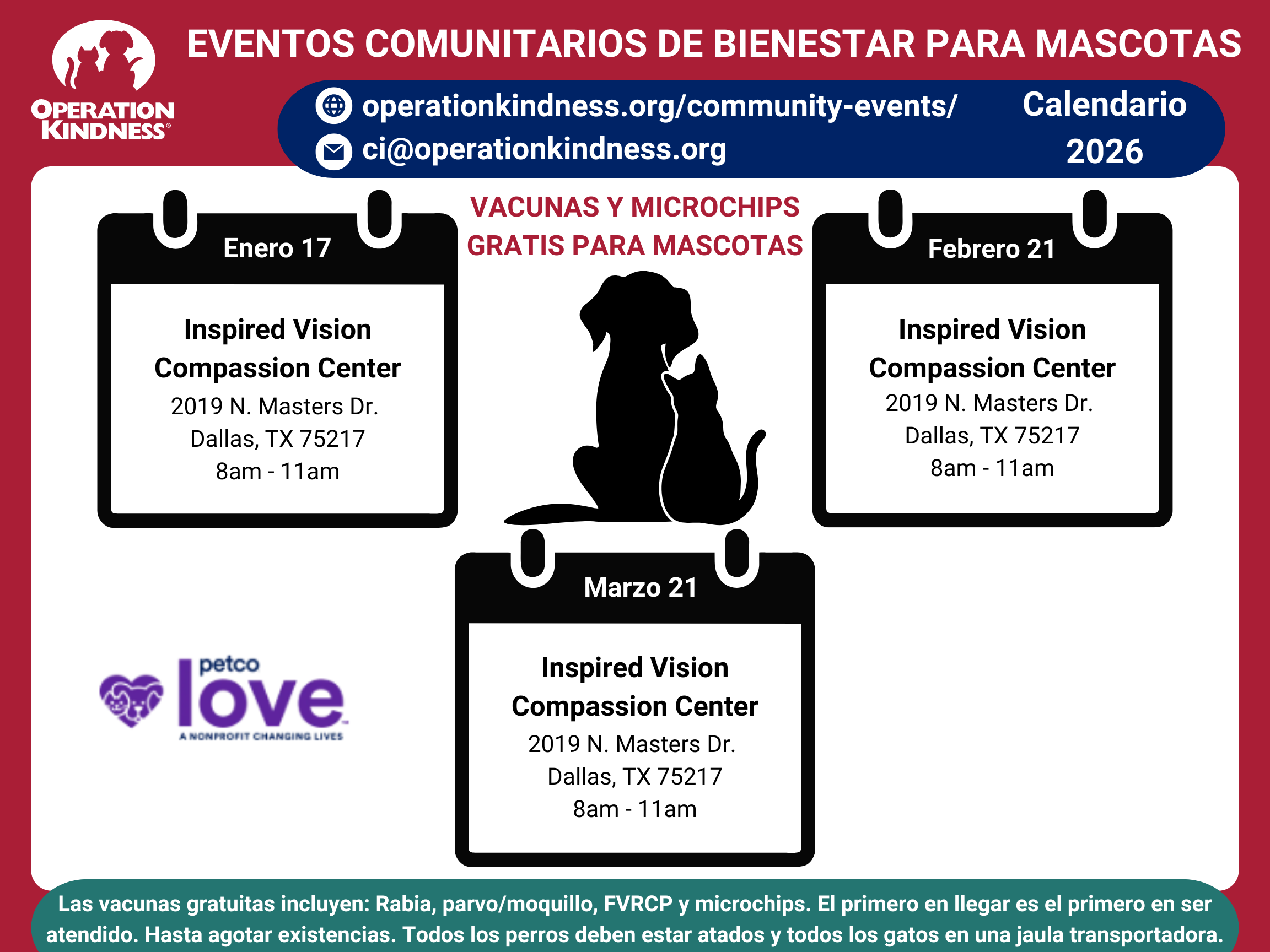 Este es un evento únicamente para vacunas y microchips. La prueba de gusanos cardiacos y la prevención NO estarán disponibles en este evento.