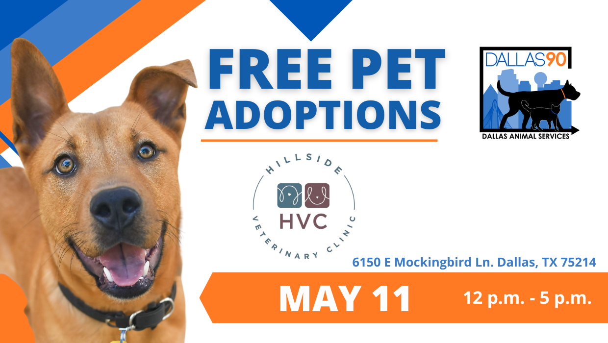 Come out to Hillside Veterinary Clinic (6150 E Mockingbird Ln. Dallas, TX 75214) for an open house and to meet adoptable pets!