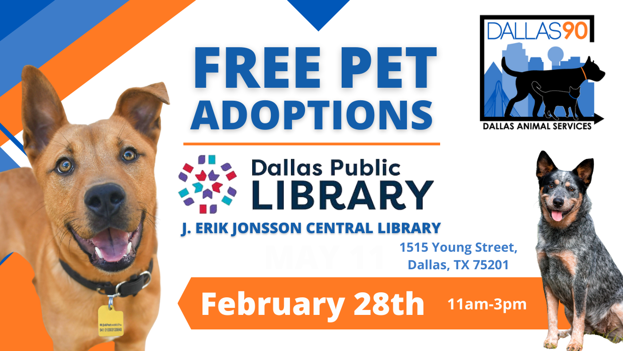 The Get Lit book Fair Come out and meet adoptable DAS pets! + Add to Google Calendar + iCal / Outlook export The event is finished. Date Feb 28 2026 Expired! Time 11:00 am - 3:00 pm Location J. Erik Jonsson Central Library 1515 Young Street, Dallas, TX 75201 Category Adoptions Share this event
